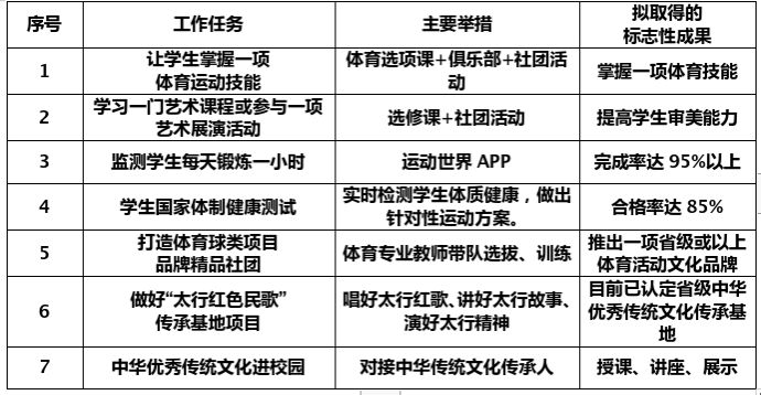 5、打造1-3项校级体艺活动品牌,打造1项省级体艺品牌,争取打造1项国家级体育或美育品牌。