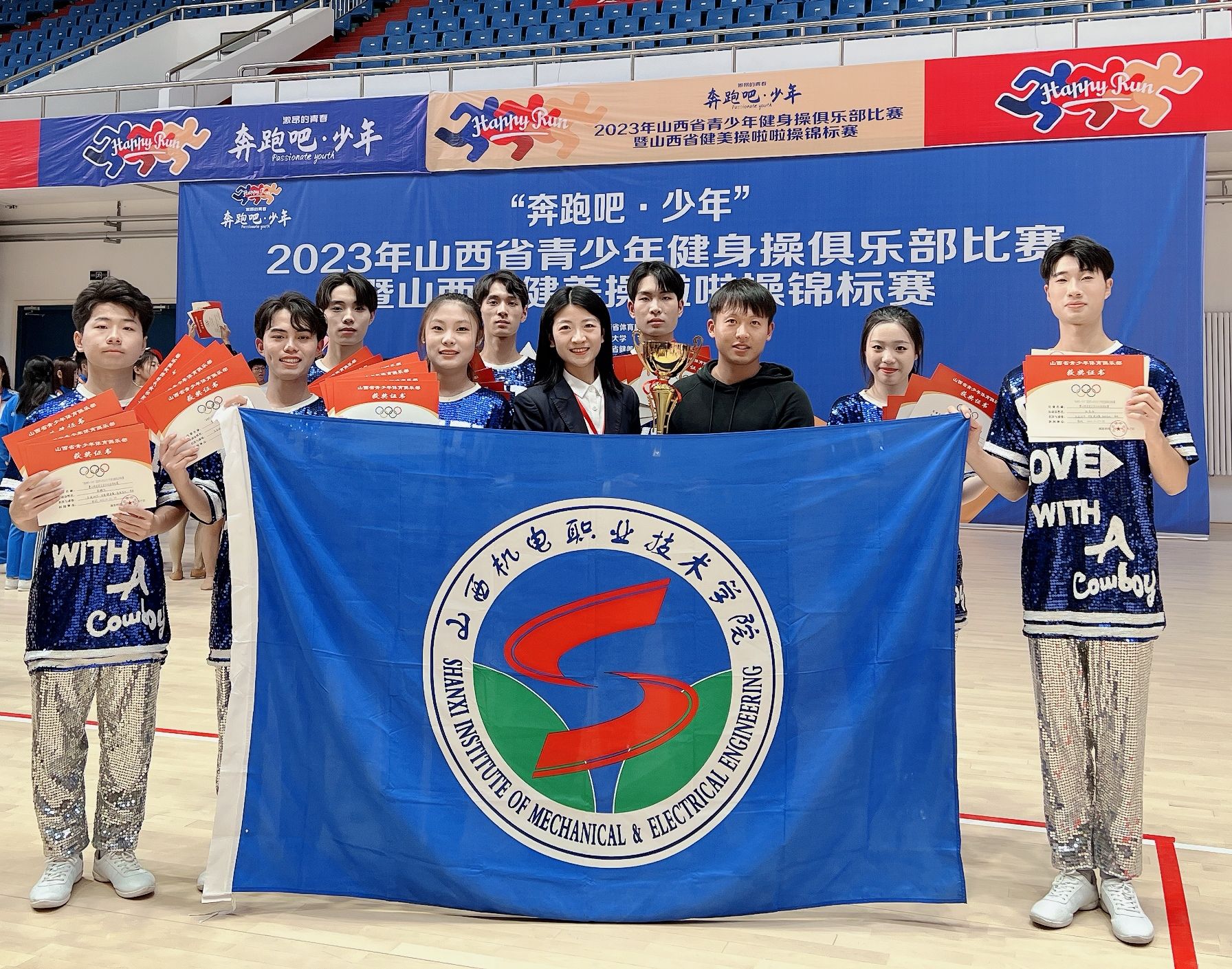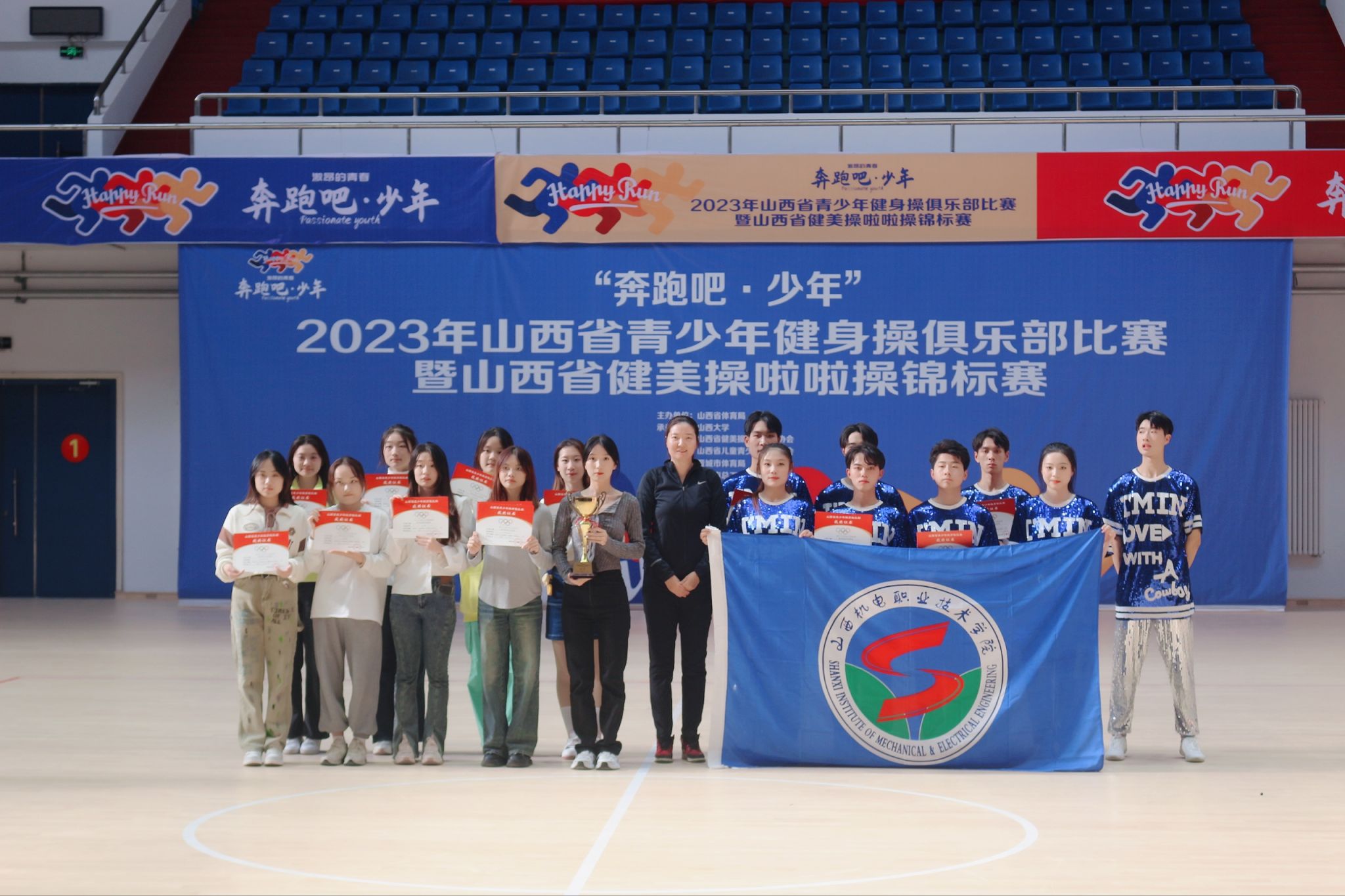 2023年10月28-29日,,山西省健美操啦啦操锦标赛在晋城市工人文化宫举行。我院代表队参加了高职高专组比赛,经过激烈角逐,最终荣获有氧舞蹈四级一等奖,自选动作:有氧健身操二等奖,自选动作:有氧健身舞一等奖,街舞HIPHOP一等奖。