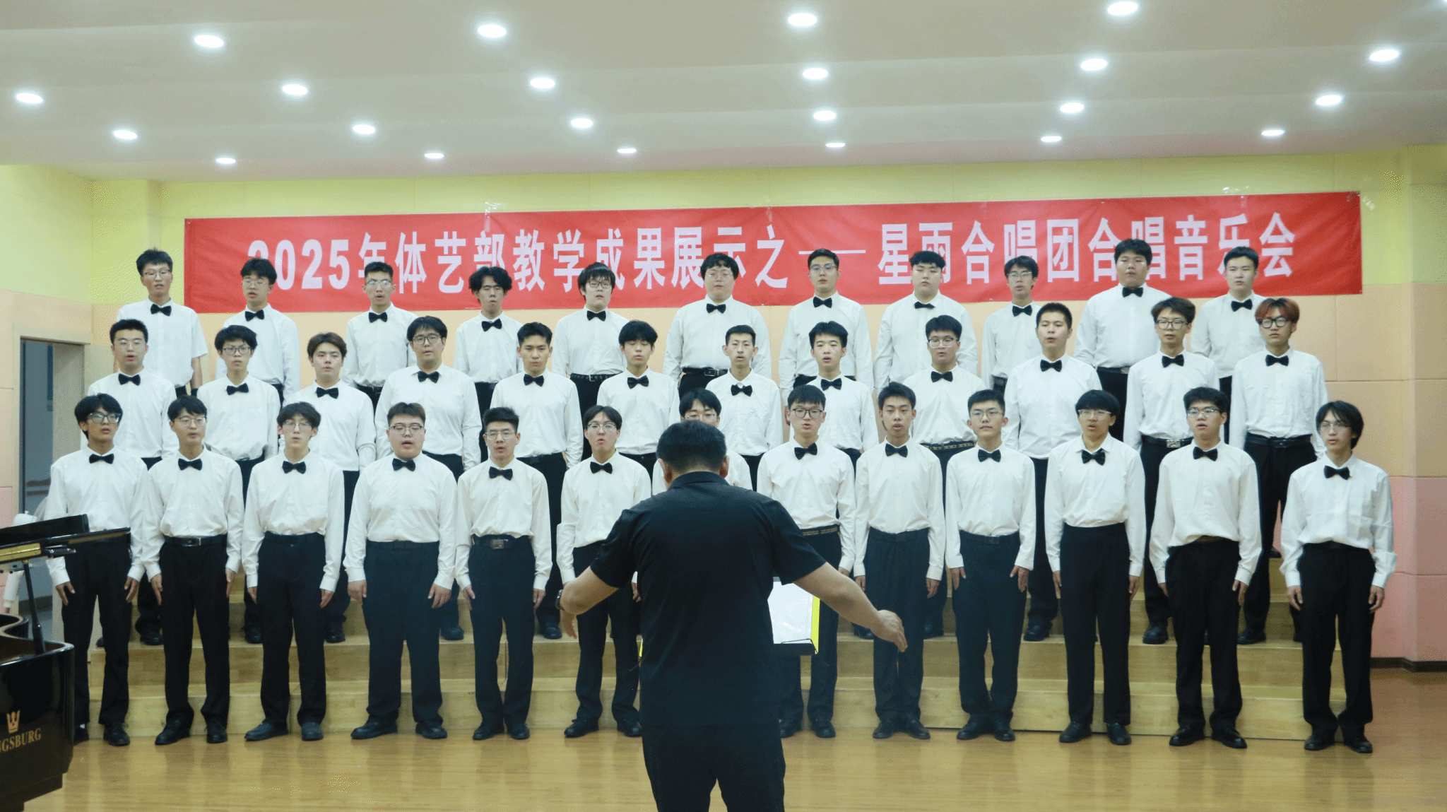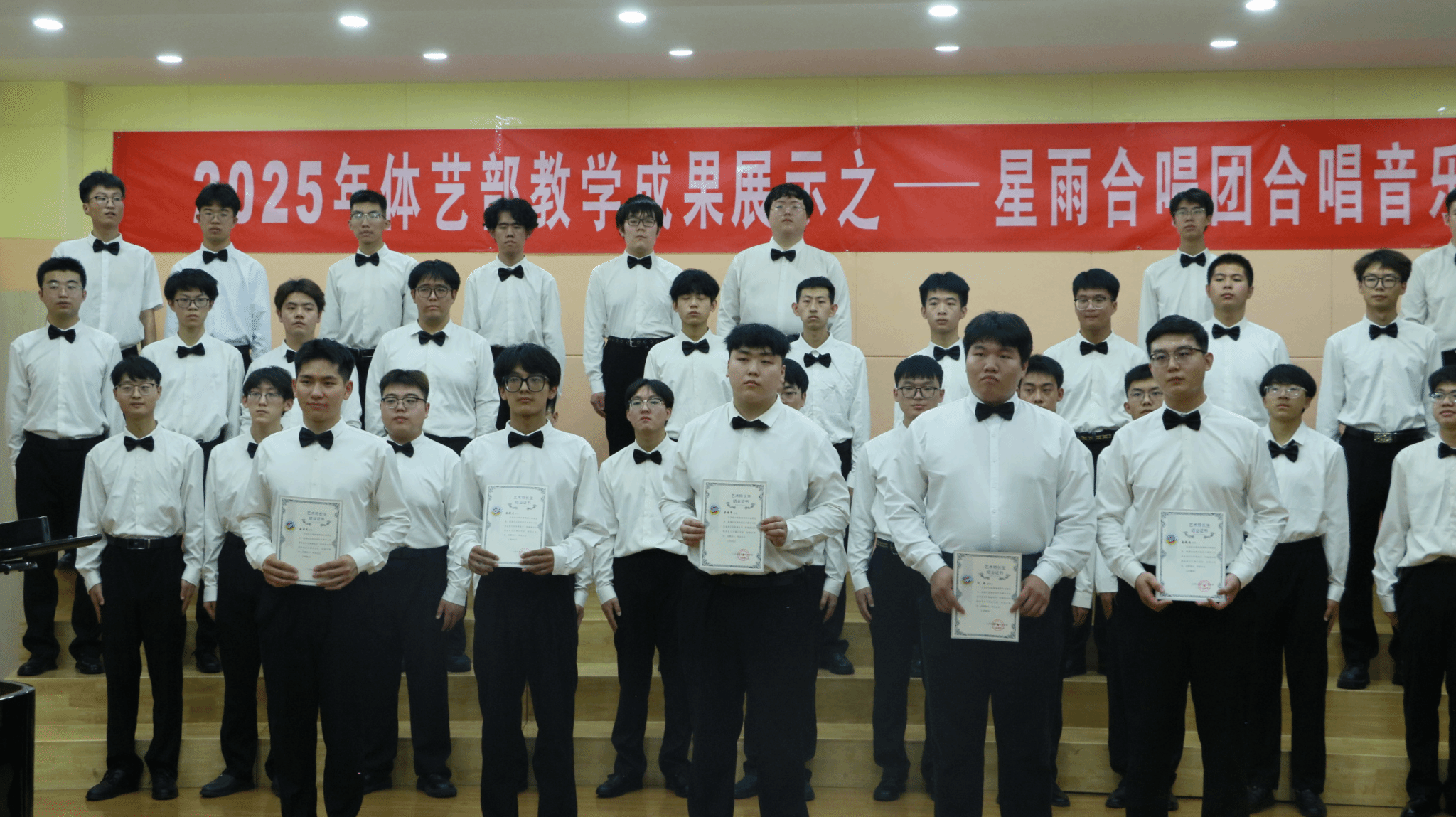 为庆祝中国共产党成立104周年,2025年6月19日晚7点星雨合唱团于文化中心音乐馆,上演了一场精彩纷呈的合唱音乐会。前来观摩指导本次音乐会的有副院长李军、组织部部长秦红伟、体育与艺术教学部主任赵树东,教学督导专家陈慧琴、程素玉,艺术教师郗诗瑶。